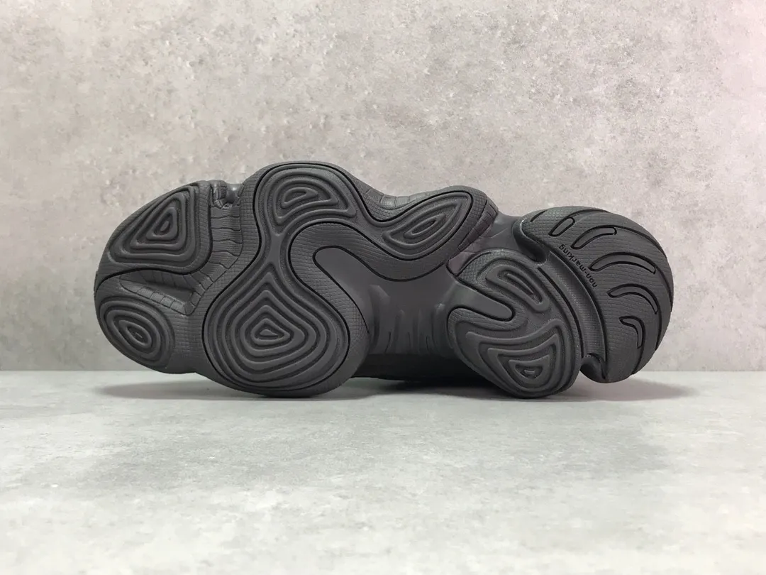 The Yeezy 500 'Utility Black' features a sleek, all-black design that embodies a utilitarian and minimalist aesthetic. The upper is crafted from a combination of premium suede, leather, and mesh, with various textures that create a layered, dynamic look. The black tones dominate the entire shoe, offering a stealthy, monochromatic appearance, while subtle reflective details add a touch of depth and sophistication. The chunky silhouette is complemented by the EVA midsole, which provides lightweight cushioning for comfort, while the durable rubber outsole ensures traction and stability. The 'Utility Black' is a versatile, no-frills colorway within the Yeezy 500 line, making it a perfect choice for those who appreciate a bold, understated look that pairs easily with a wide range of outfits. Its durable construction and modern design make it a functional yet stylish option for everyday wear.